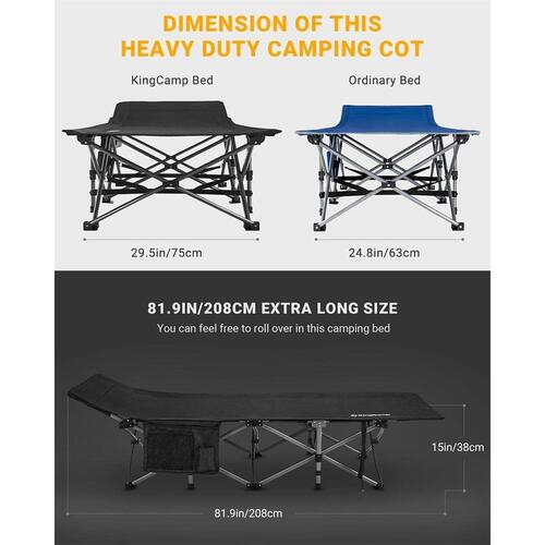 Extra wide 75cm bed ensures plenty space for luxury nap and sleep. Extra long 2.1m bed fits most people up to 6'2 - 1.9m. Breathable 400D double layer oxford fabric. Raised padded pillow design provides a great support to headrest and neck for best comfort.