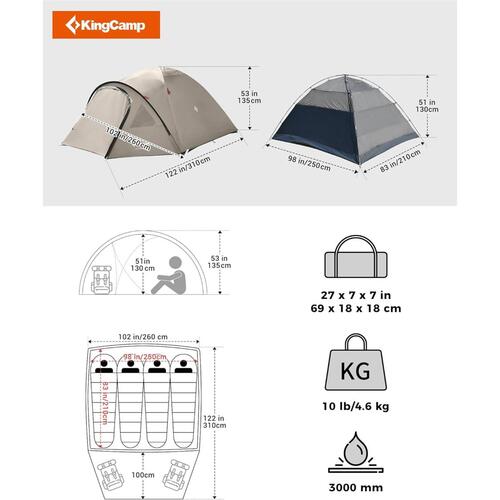 Kingcamp Holiday 4 Person Dome Tent Beige
