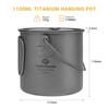 1. Ultimate Outdoor Companion: Elevate your outdoor culinary experience with our titanium sling line, designed for handheld and hanging scenarios. Sized at D117*H110mm and boasting a generous 1100ml capacity, this 0.4mm thick, 157g masterpiece has become the go-to choice for outdoor enthusiasts. The versatile hanging wire design adds a touch of fashion and convenience, making it the first choice for practical and necessary professional tableware equipment.