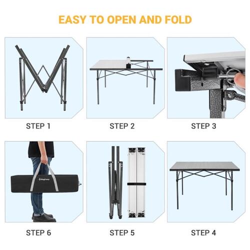 The aluminum alloy desktop, anodized for rust resistance, is lightweight yet sturdy. The mixed design of aluminum alloy and steel pipe shifts the center of gravity downward, providing overall stability. The triangular hinge structure offers exceptional support, ensuring a stable setup in any outdoor setting.