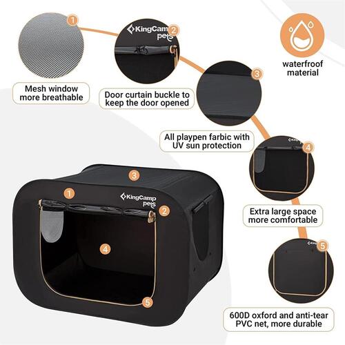 Perfect for medium to large-sized dogs, the KingCamp Pop Up XXL Pet Tent is a spacious and durable shelter designed with your pet's comfort in mind. It's ideal for outdoor adventures, camping trips, and backyard relaxation.