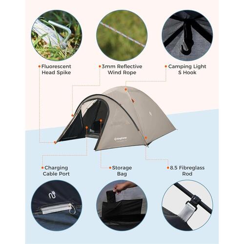 High-quality fibreglass poles (8.5mm) + reinforced wind ropes withstand even gusts. PU3000mm water column + PE floor with raised seams: it stays dry inside in heavy rain. The window design with PVC viewing window allows visual contact with the outside - perfect for checking the weather without leaving the tent.