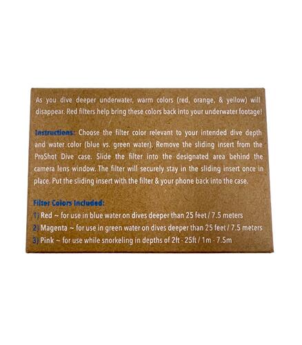 --Magenta filter: for color correction in green water below 25ft/7.5m