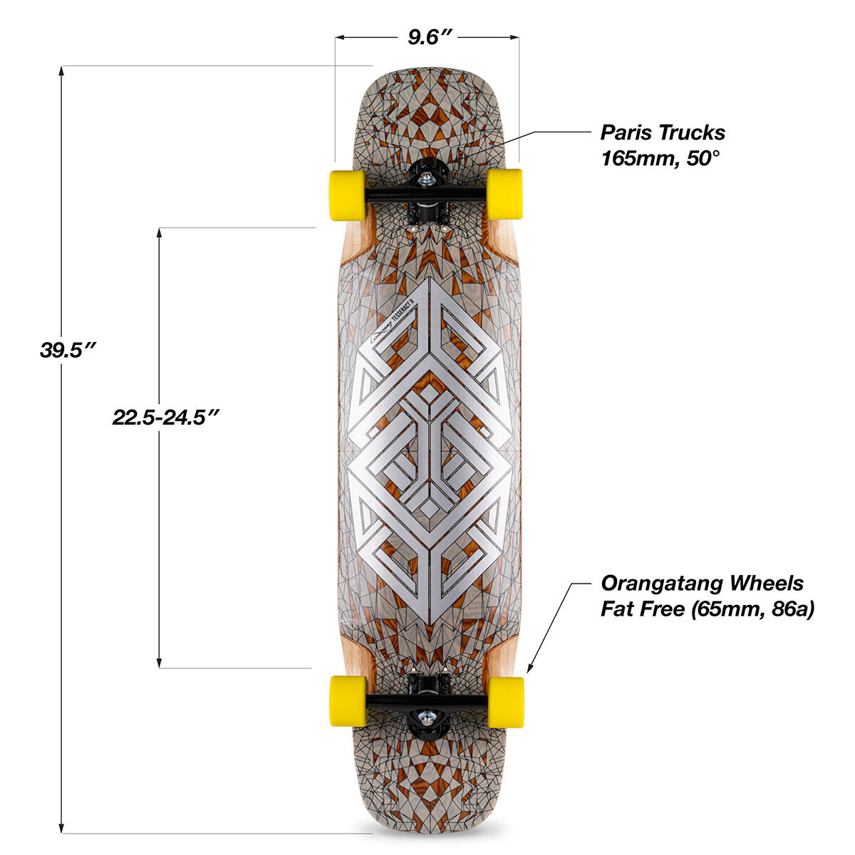 • Unleash your freestyle tricks and technical freeriding on one deck. Land huge flips, send slides on steep hills, or flow through urban plazas. Multiple wheelbase options let you fine-tune for stability or responsiveness. Whether you’re chaining manuals or slashing sideways, the Tesseract II adapts to your needs and transports you to new planes of reality.
