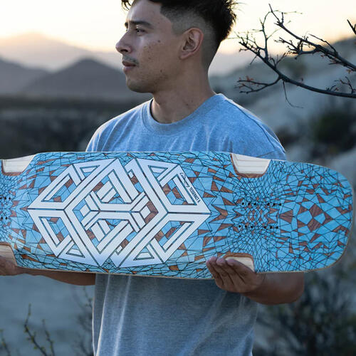 The Tesseract II is your portal to high-performance freestyle and freeride. Its micro-drop platform locks you in for an immersive connection, while symmetrical double kicks defy gravity, opening up a universe of possibilities. Built with six plies of long-grain maple and triaxial fiberglass, it's engineered for perfect stellar stiffness and explosive pop. Laser-cut 50-grit griptape and machined wheel wells keep you grounded, while the photochromic graphic hints at new dimensions in your skateboard progression.