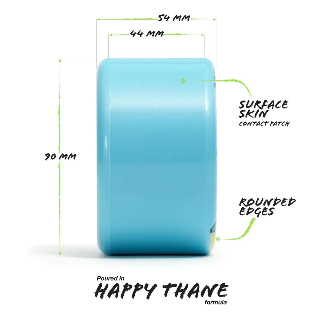 With loads of plush pollinated urethane, a centerset core, and big ol’ round lips with chunk-resistant roundovers, this thing rolls smooth, grips hard, and eats up rough roads. At just 10.1 oz per wheel, they’re light and quick: perfect for long-distance pushers, and anyone who treats curb-hopping like cardio. These adept 90mm honeycombs are here to smooth your stoke and take the sting out of rough rides.