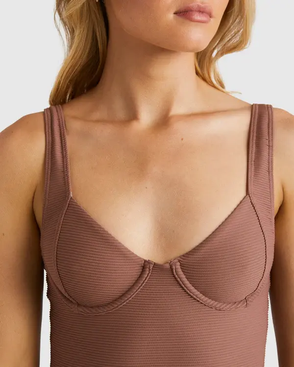 Fabric: 91% Recycled polyester 9% elastane blend tanlines rib fabric
