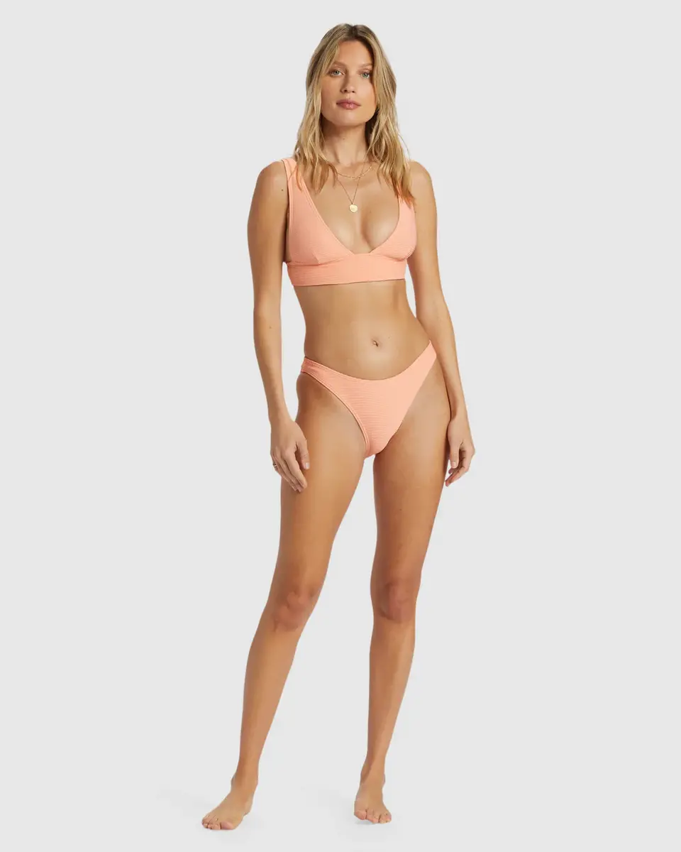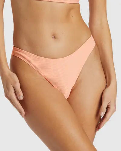 Righteously ribbed, this ode to 90’s skivvies brings together retro bikini bottoms and a swimmable rib knit fabric. A women’s bottom stands out from the sea of plain swimsuits with a textured fabric and a super high cut leg that’s designed to wear over the hip, creating a long-legged silhouette inspired by decades past. The Hike cut features a super slim seat and low front rise for maximum tanning potential.