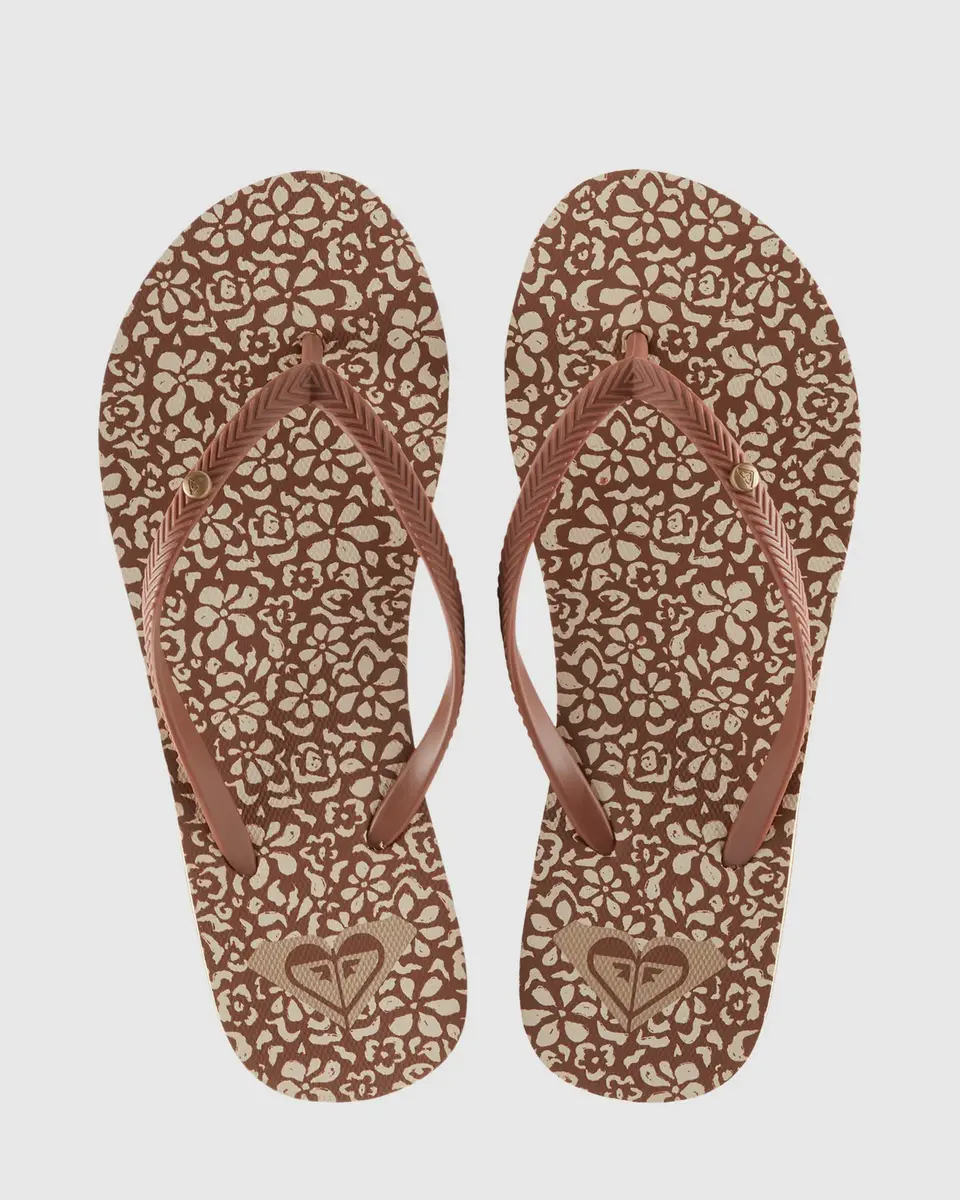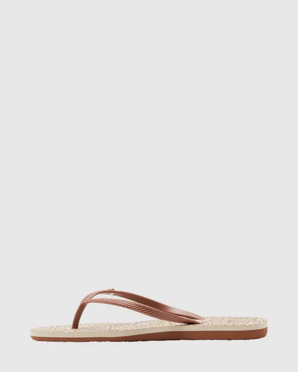 Lightweight and durable, these women's flip-flop sandals are designed with a printed footbed and a flexible rubber outsole, adding textured straps and a ROXY branded metal pin for a pop of flavour. Available in a range of colours to match any outfit.