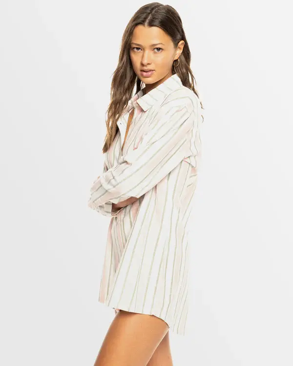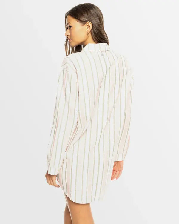 Roxy New Blue Riptide Shirt Dress Cloud Dancer Sandy