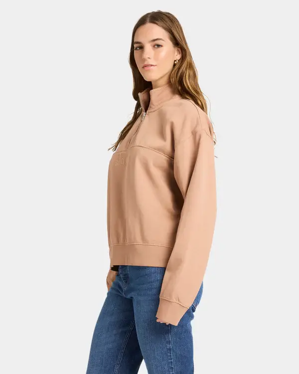 Rib at hem and cuffs Half zip with metal zipped opening Sunfaded wash effect Contrasted bias piping cord at front and back chest Heritage embroidery at chest