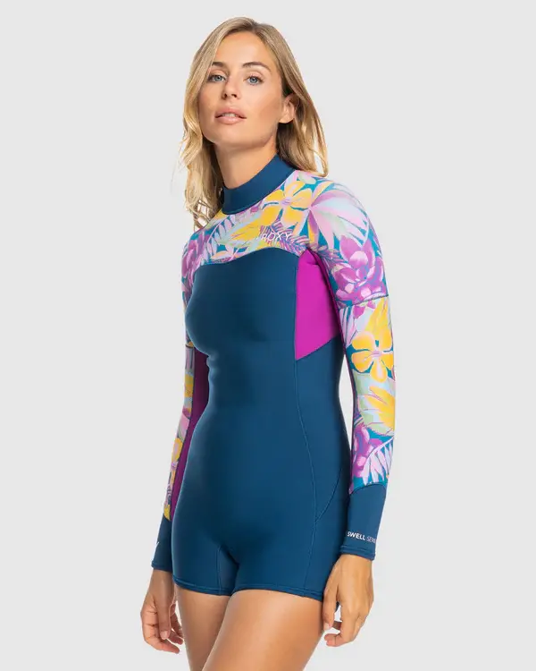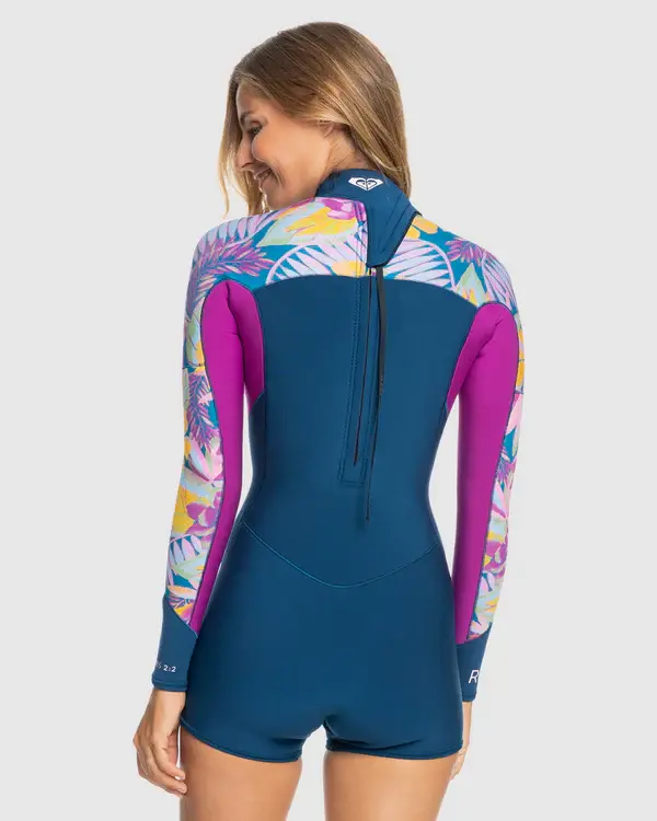 Roxy 2Mm Swell Series Long Sleeve Back Zip Springsuit Anthracite Hot Tropic