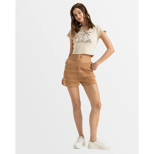Spice up your daily look with these open-knit striped shorts. With their relaxed fit, elastic waist, and ribbed hem detail, these retro-inspired beach shorts deliver a perfect warm-weather vibe. Featured here in the Camel colorway.