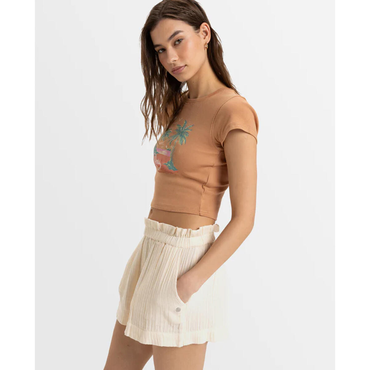 Embrace carefree beach vibes in these organic cotton shorts. The high-rise, paper-bag waist and roomy pockets give you a laidback, stylish look, while the soft, breathable fabric keeps you cool and comfy. Whether you're strolling the boardwalk or lounging seaside, these versatile "What A Vibe" shorts are the ultimate in beachy bliss. Featured here in the Parchment colorway.