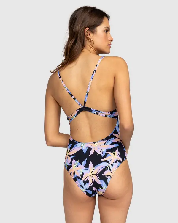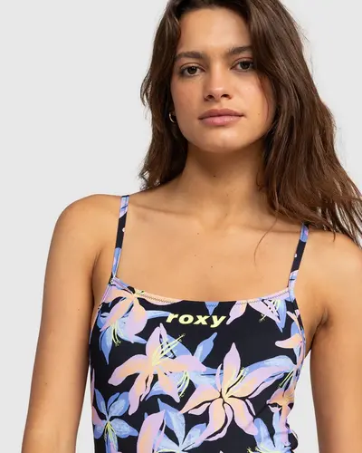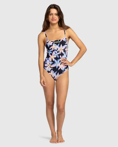 Take a dip in this printed one-piece swimsuit from the ROXY Active Collection. Made of soft and stretchy recycled nylon-blend fabric with high resistance for years of lasting wear, this performance swimsuit has a scoop neck and crisscross back straps for a secure fit and total mobility.