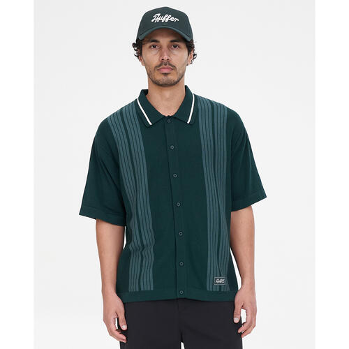 • Here's what you should know: 100% Cotton fully fashioned knit with custom Huffer stripe, a boxy streetwear fit with short sleeves and a button front closure - bringing the signature Huffer energy to the course.