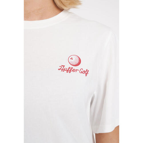 • Here's what you should know: 170gsm 100% Cotton with a 15mm neck rib, a standard weight jersey with custom Huffer piece dyed colour, a classic fit with short sleeves and Huffer branded placement screenprint - bringing the signature Huffer energy to the course.