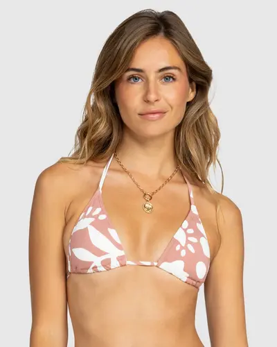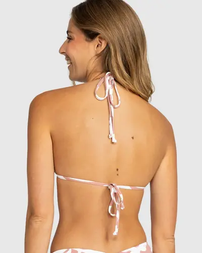 Crafted of soft and stretchy recycled nylon, ROXY's Printed Beach Classics Mini Tiki Tri Bikini Top upgrades a classic triangle style with fresh floral prints and strappy ties at the neck and back.