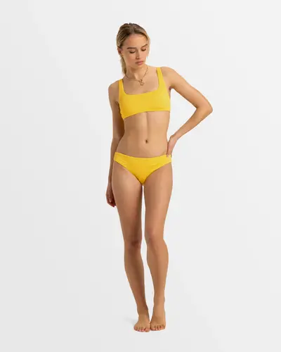 Get ready for the waves with The Glassy Bikini Top from our Rib ROXY Love Collection. Made of a soft and strong partially recycled nylon blend fabric, this bralette swim top has a sporty shape with high support, a scoop neck, fixed straps seamless finishings to compliment your curves. Featured here in the Beach Ball colorway.