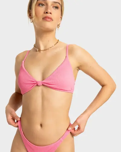 Roxy Rib Love The Surf Knot Bikini Top Pink Carnation