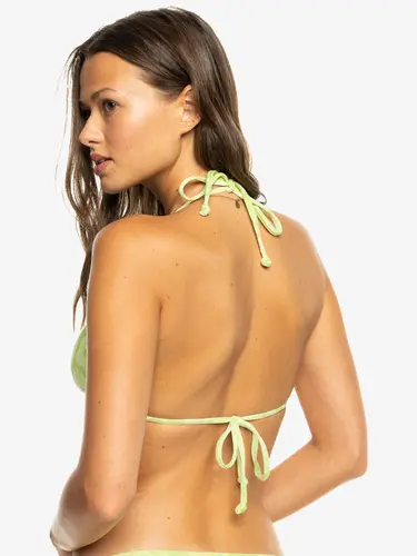 Show off your sun-kissed glow with the Solaria Tiki Tri Bikini Top from ROXY. The soft, partially recycled fabric blend provides stretch and coverage, while the adjustable tie straps and removable pads offer customizable support. With its slide triangle shape and skimpy silhouette, this halter top is perfect for making a stylish poolside splash. Featured here in the Tomatillo colorway.