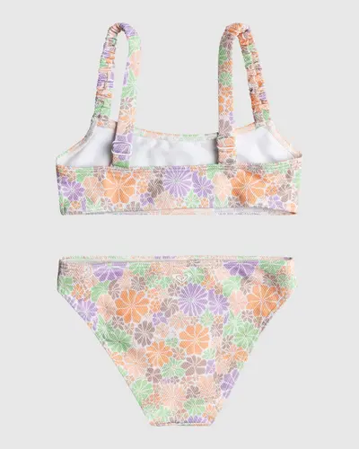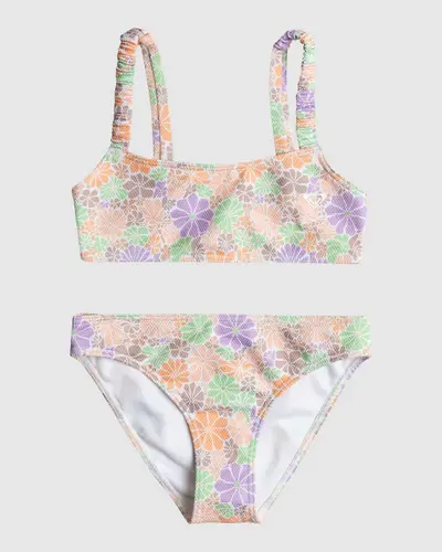 Look and feel your best in ROXY's All About Sol Bralette Bikini Set. Crafted of textured recycled fabric, this floral swimsuit features ruched, adjustable straps on the top and a classic full-coverage bottom.