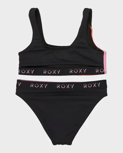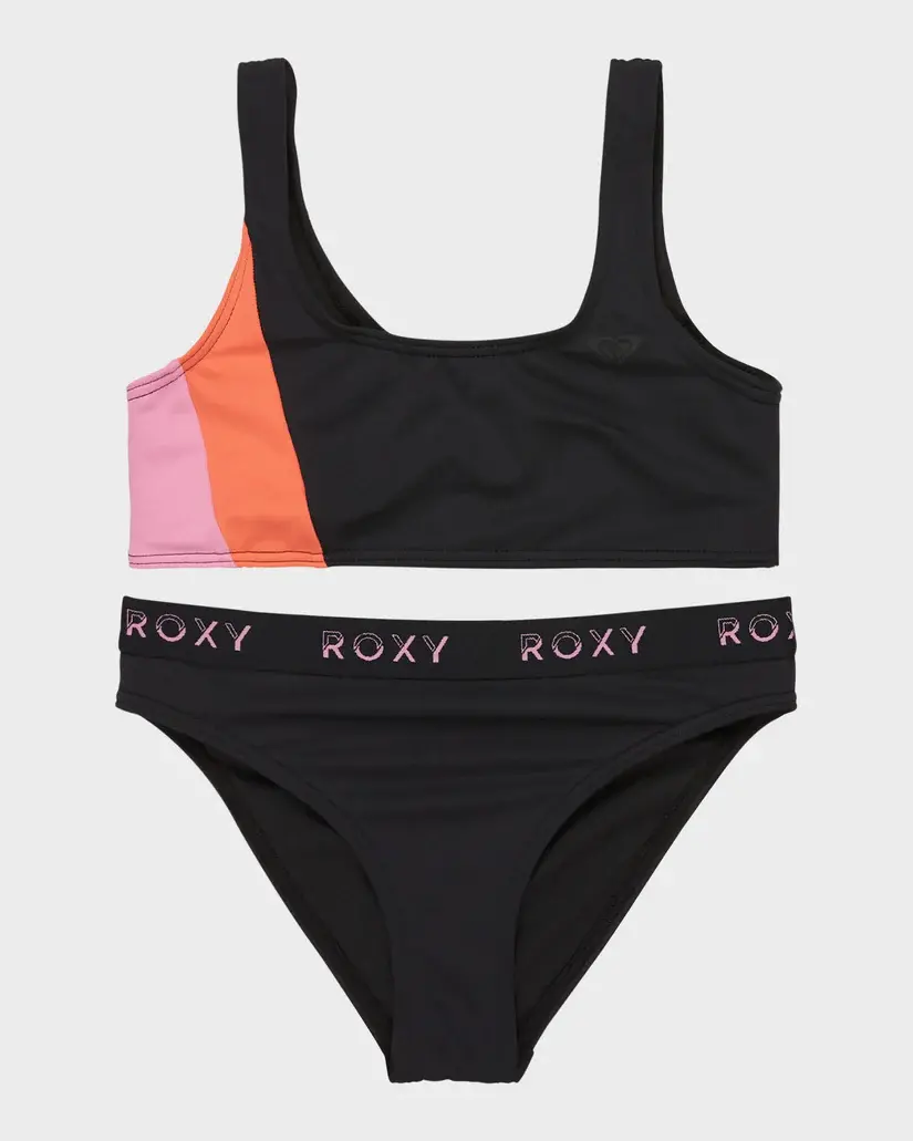 Closure: Fixed ROXY elastic at back on the top and on the bottom Contrasted color panels at front Heart roxy logo at chest