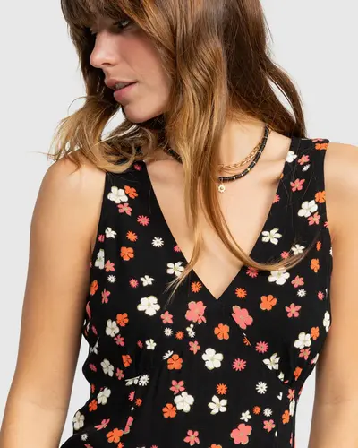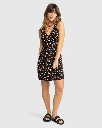 Roxy Sunday Feeling Print Mini Dress Anthracite Sunny Day