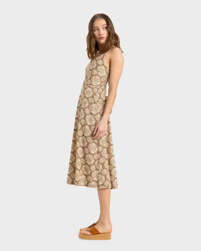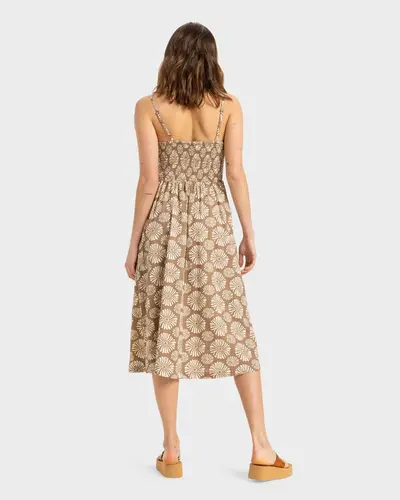 V-neckline Adjustable spaghetti straps Smocked back bodice Side seam concealed pockets