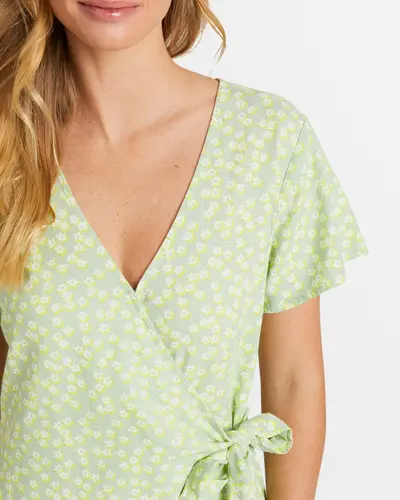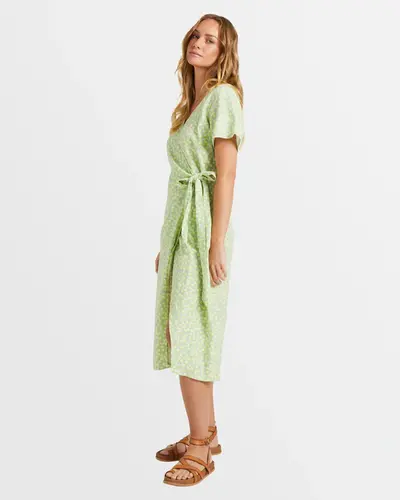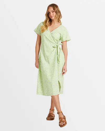 Roxy Indigo Sand Wrap Ii Dress Quiet Green Floral Delight