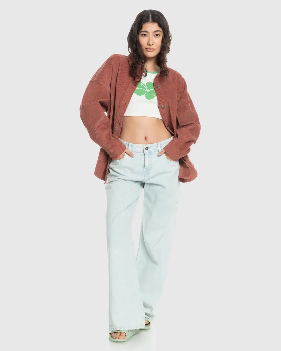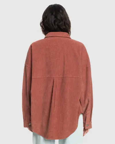 ROXY's Kick Back long-sleeve top offers a relaxed fit with a collar neck and front shank buttons. Crafted with heavy-weight cotton corduroy fabric, it features front patched pockets and side vents for an extra stylish look.