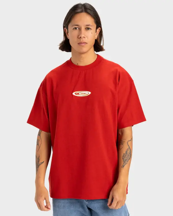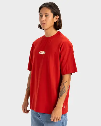 Neck: Crew neck Soft hand screen print Quiksilver woven label in side seam