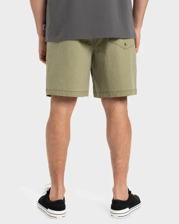 Fly/Waist: fake fly Round cotton drawcord at waistband Side pockets Back pocket Quiksilver branding