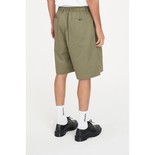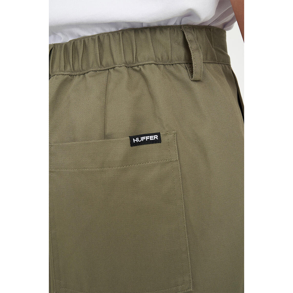 � What you need to know: 100% Cotton, 270gsm, Relaxed fit, Front pleats, back elastic waist, Huffer branded hardware, Huffer branded woven label