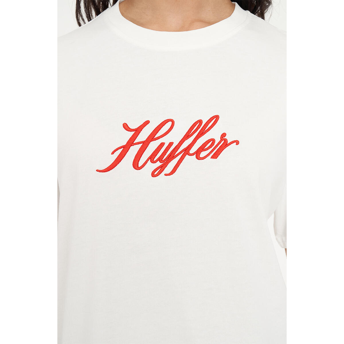 100% Cotton / 170gsm / 15mm Neck rib / Standard weight jersey / Custom Huffer piece dyed colour / Classic fit / Short sleeve / Huffer branded placement embroidered