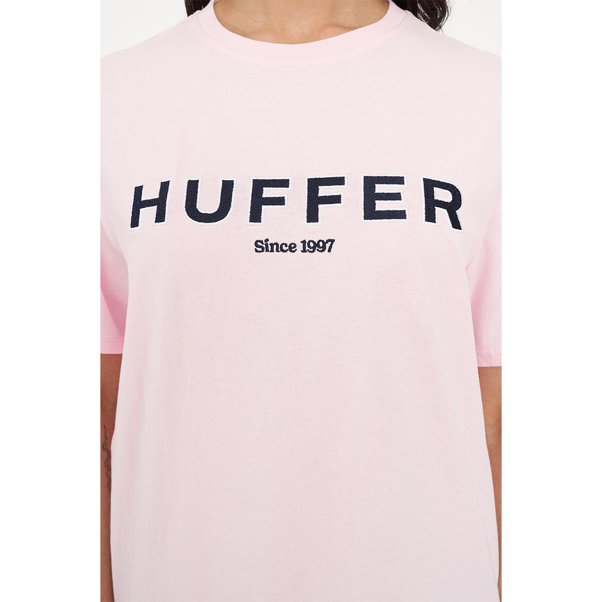 100% Cotton / 170gsm / 15mm Neck rib / Standard weight jersey / Custom Huffer piece dyed colour / Classic fit / Short sleeve / Huffer branded placement embroidered