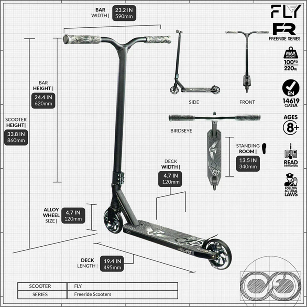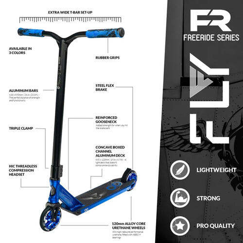 Why settle for an ordinary scooter when you can embrace the ultimate fusion of style, performance, and rideability with the FLY FreeRide FR Series Pro Infinity Scooter? Whether you're cruising the streets or dominating the skate park, the FLY is the perfect choice for riders who seek the pinnacle of scooter experience.