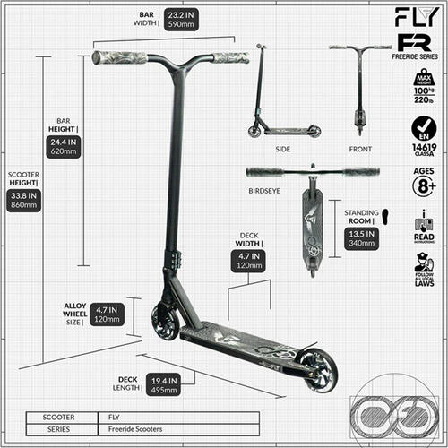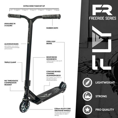 Why settle for an ordinary scooter when you can embrace the ultimate fusion of style, performance, and rideability with the FLY FreeRide FR Series Pro Infinity Scooter? Whether you're cruising the streets or dominating the skate park, the FLY is the perfect choice for riders who seek the pinnacle of scooter experience.