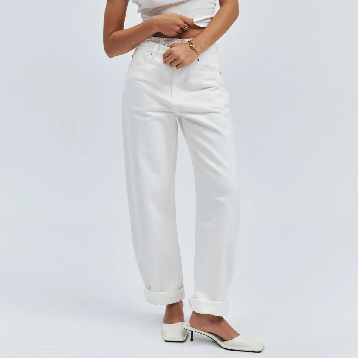 - Has a longer leg than our Gigi Barrel, finishing just below the ankle which can be rolled up for a more cropped look