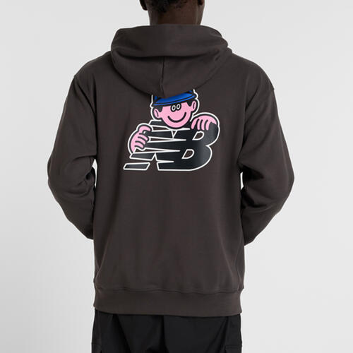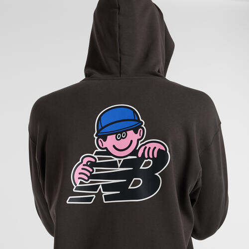 Stay comfortable and stylish with the Face Oka Character Hoodie. Made by New Balance, this oversized and versatile hoodie features a unique logo on the front and back, adding a playful touch to your wardrobe.