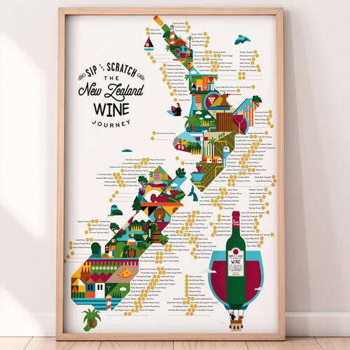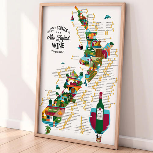 The Wine Sip and Scratch is a stunningly illustrated map of Aotearoa, New Zealand, showcasing the diverse and exceptional wines from a selection of vineyards across the country. Each winery on the map features a scratch-off foil dot, turning it into an interactive diary of your wine-tasting adventures. Sip a new vintage, scratch off the dot, and share your discoveries with friends and family as you explore the finest wines our land has to offer!