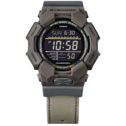 Check all the boxes with a striking timepiece that is easy to use, comfortable to wear, and built for longevity. Introducing a large-case G-SHOCK with long-lasting battery to complement your nature-minded lifestyle. The GD-010 deliver the shock-resistance to withstand hard use and a battery that lasts for 10 years. Key resin components are made with bio-based resin, a material expected to help reduce environmental impact. The band employs CORDURA® re/cor™, made from highly durable CORDURA® fiber and recycled PET plastic fiber, and is colored with FOOD TEXTILE dyes made from echinacea extracts, yielding gentle, naturally derived hues. Both of these watches add a touch of cool, nature-minded design that moves with ease from casual settings to work situations. * CORDURA® is a registered trademark of INVISTA for durable fabrics. FOOD TEXTILE A brand of a fashion industry project focusing on reusing food waste to produce original dyes and providing threads and fabrics colored using these dyes. The project supports a sustainable lifestyle with the concept of “breathing new life into what would otherwise go to waste.” * Since natural dyes are used, each product will be unique, and may have uneven coloring.
