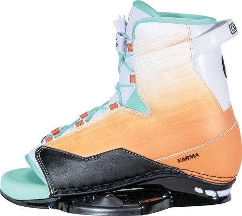 The Karma boot design can handle a wide array of foot sizes with a liner that stretches out or compacts down to the desired fit. An easy-to-use single lace cinches you back into an ergonomically shaped heel pocket for pro-style response. Our Infinity Plate chassis is the strongest in the industry and is fitted with a cushy EVA footbed to protect from heel bruises on hard landings.