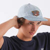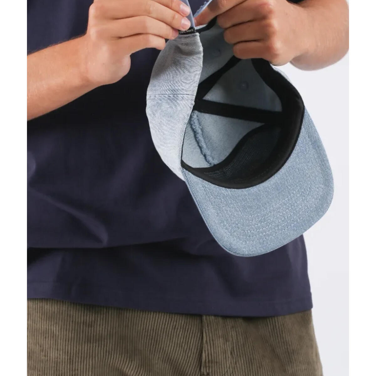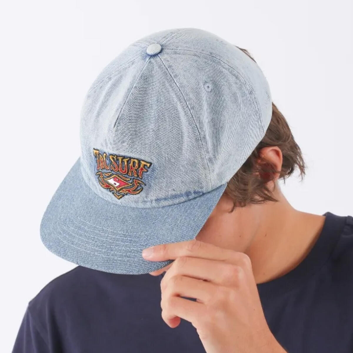 • One of our most popular products is this deconstructed snap back cap. To spice things up a bit, it's now available in stone washed denim, with the uber cool diamond heritage embroidery.