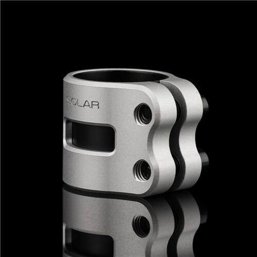 The Solar double clamp boasts a clean and compact design that weighs only 70g. This double clamp is made from premium 7075 aluminium making it incredibly strong compared to clamps that use 6061 aluminium. The engraved branding ensures a minimal look allowing the clamp to effortlessly compliment your scooter.