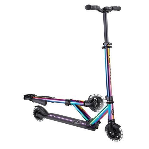 Globber FLOW ELEMENT with light-up wheels - 2 wheel folding scooter for 5y+ - Neochrome with Black Deck