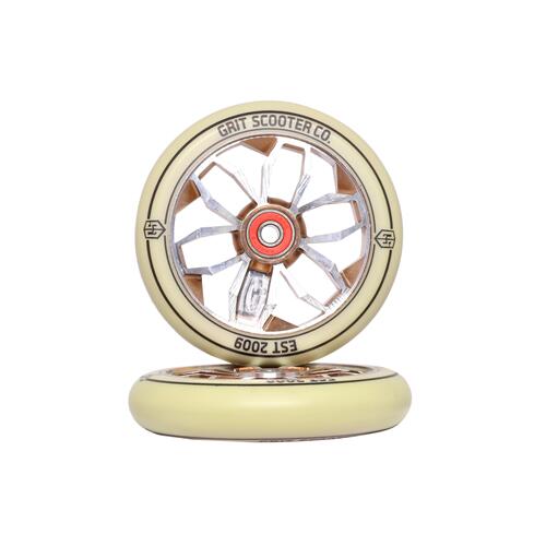 Grit 120mm x 24mm wheels Vintage White PU with Silver / Bronze Core (Pair)
