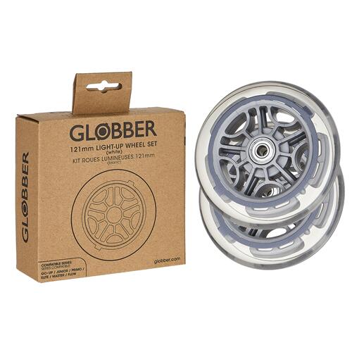 Globber 121mm WHITE Light Up Wheel set (Pair) GoUp/Junior/Primo/ Elite/ Master/ Flow