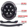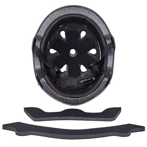 CORE� Action Sports Helmet features Lightweight EPS polystyrene foam lining Premium low profile snug fit ABS outer shell 11 heat reducing air vents Inner padding 3 pieces removable & washable 3 point durable nylon strap Size adjustable chin straps with red safety buckle Classic low profile skate helmet design