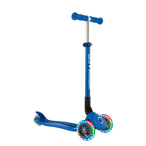 Globber PRIMO FOLDABLE LIGHTS 3-Wheel Foldable Kick Scooter With Light-Up Wheels For Kids Aged 3+, in Navy Blue